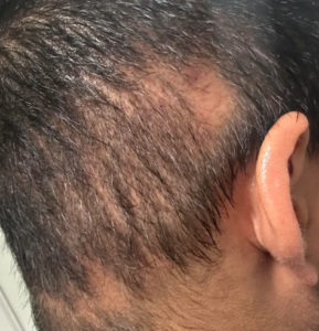 They don’t appear to be thinner in diameter than the hairs next to them…but also don’t seem to grow as strong (i.e. they ‘fall down’ rather than grow straight up).