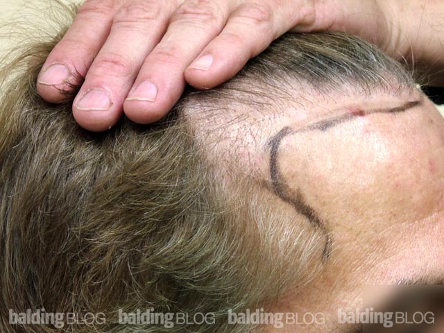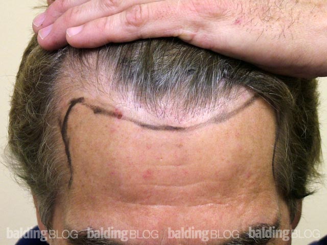 This patient visited the office recently to ask about some thickening in the area behind the transplants where he believed he is thinning. He has been on Propecia since the transplants were done, and although most of the hair has been held, the genetics has been persistent at taking some of his hair away.